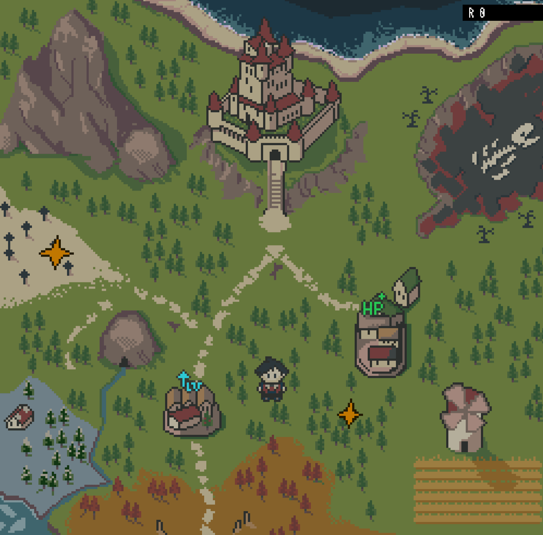 Below is a gameplay video to give you an idea of how the game is supposed to be played. You can move around with arrow keys and enter battle by overlapping with a star in the overworld.