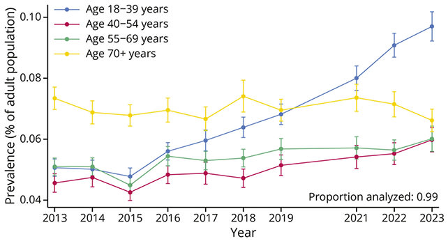 The numbers are unambiguous. From 2013 to 2023, the age-adjusted prevalence of such “cognitive disability” in U.S. adults rose from 5.3 to 7.4 percent. But the real shock lies in who changed. Among adults 18 to 39 years old, the supposed cognitive prime, the prevalence nearly doubled, from 5.1 to 9.7 percent. It climbed across every racial and economic line. It tripled even among the highest-income bracket, those meant to be buffered by privilege.